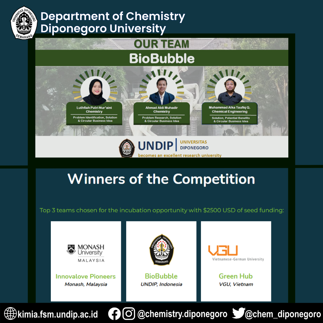 Tim Mahasiswa Kimia Universitas Diponegoro Raih Penghargaan di Kompetisi Circular Innovation Competition 2023